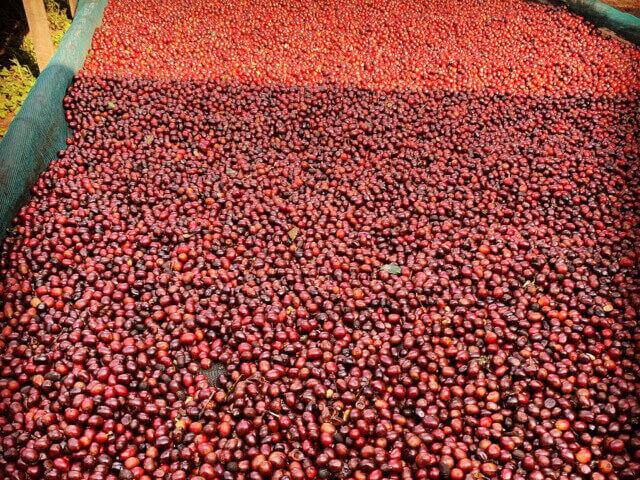 こうした微気候の影響下で収穫は1月~4月と非常に遅いタイミングで行われ、長い時間を掛けてチェリーの熟度が増していきます。ナチュラルプロセスにおいては、収穫後フローターを除去し熟したチェリーの実を集め、アフリカンベッドに持ち込みます。アフリカンベッドは、設置場所にも気を遣い、1日の半分が日陰になるように設置。この地の冷涼な環境も相まって、35-40日かけて水分値を11%まで乾燥という超スロードライングを行っています。チェリーは30分に一度攪拌し、ビニールハウス付きのアフリカンベッドと屋根なしベッドを併用しながら、豆の状態に応じて適切な環境下で乾燥を行っています。 また、カッピングにも精通し、各品種の風味を理解し、それぞれのプロセスでどのように変化していくかを丁寧に検証しています。オレンジブルボンは、非常にカップバランスに優れており、繊細なボディ感とミカンのような甘さを伴うクリーンな酸が特徴だと言います。また、滑らかな質感が心地よく、アフターテイストも長持ちするのが特徴と言います。そして、このオレンジブルボンをナチュラルプロセスにすることで、質感の良さがより明確に表現でき、レッドフルーツのようなアロマが付帯し、風味に奥行きを与えると言います。