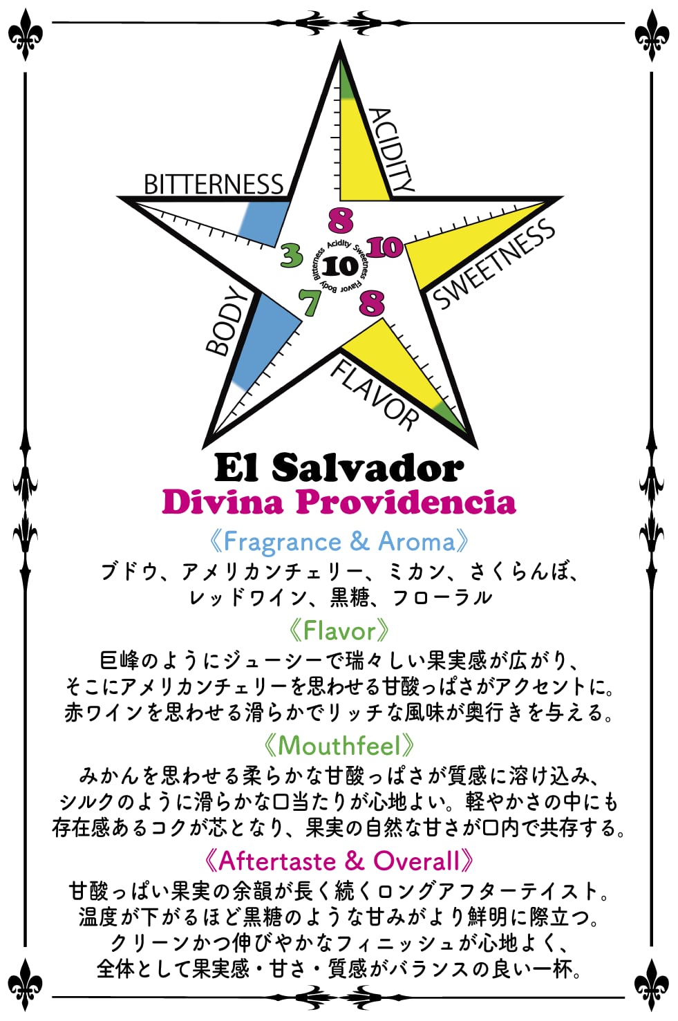 ★上記テイスティングプロフィールは、カッピング&フレンチプレスによる総合評価となります。