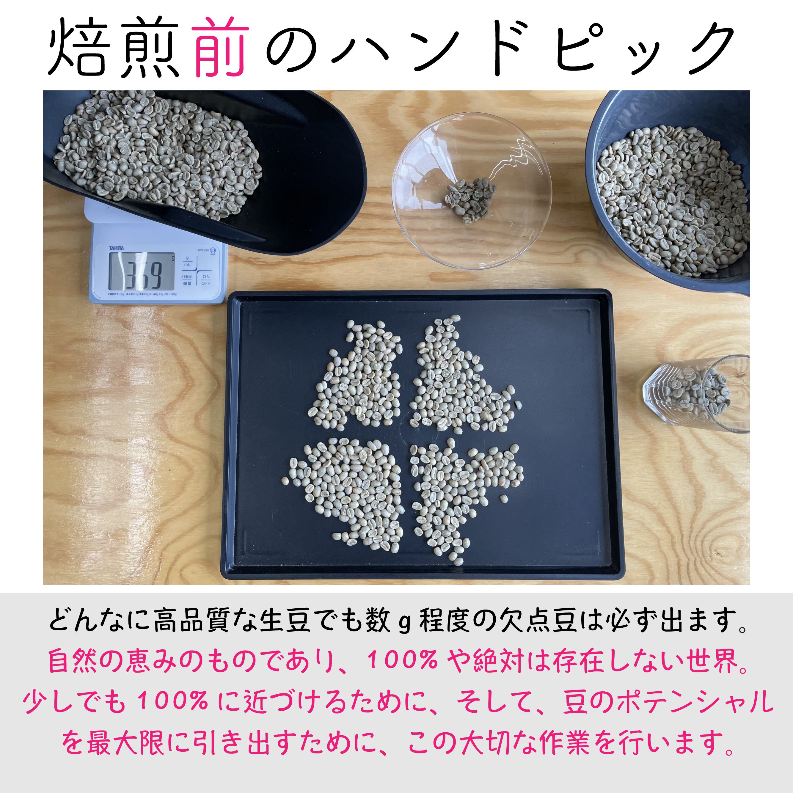 ★焙煎後に最終チェック(ハンドピック等)を行い、最良の状態・鮮度の高い状態でパッケージングしているため、素晴らしい風味や香味をいつでも、どこでも気軽にお楽しみいただけます。